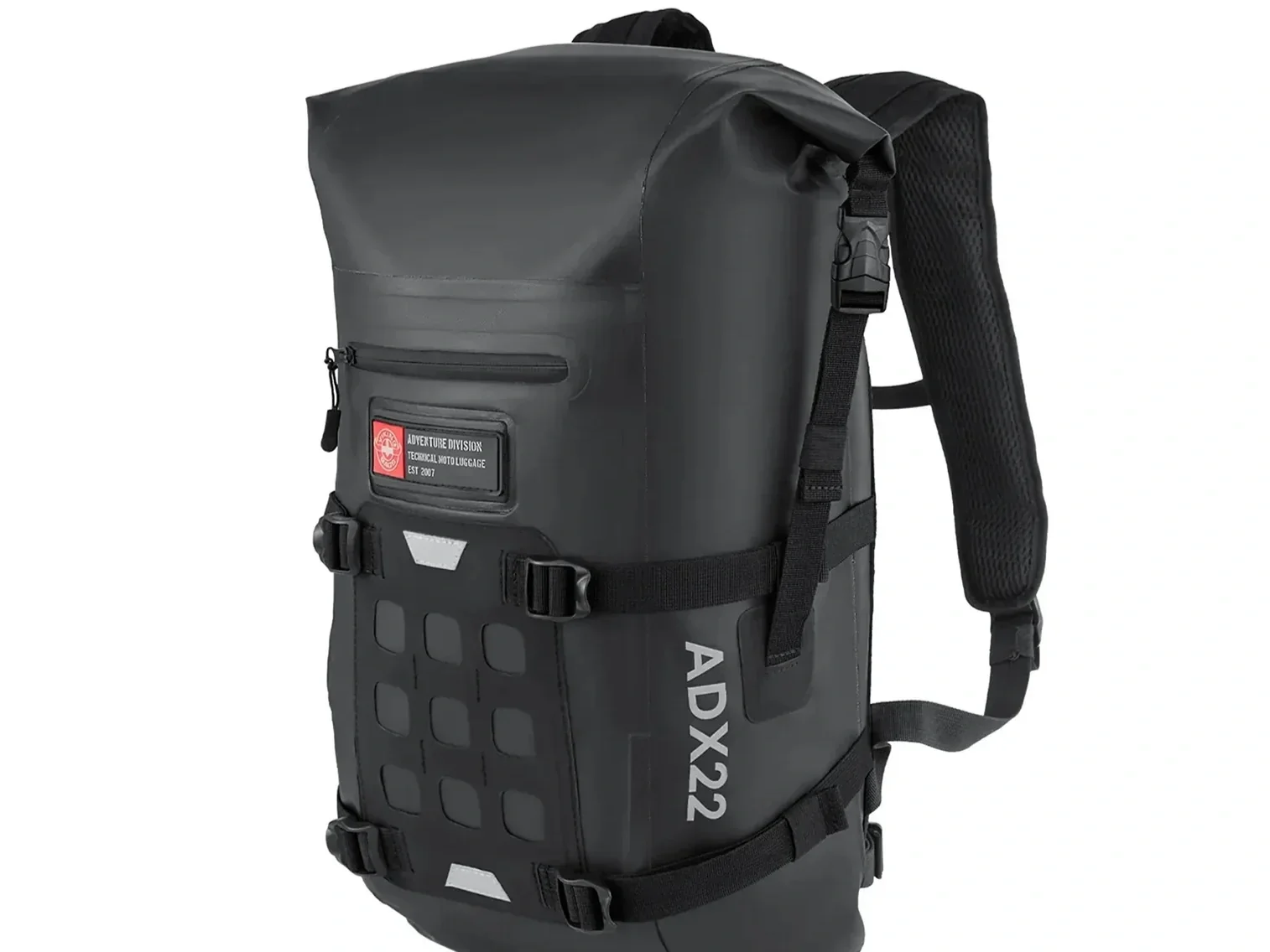 The 22L Explorer Adventure Touring Backpack is a dry ADV backpack that can be carried over your shoulders and on a luggage rack.